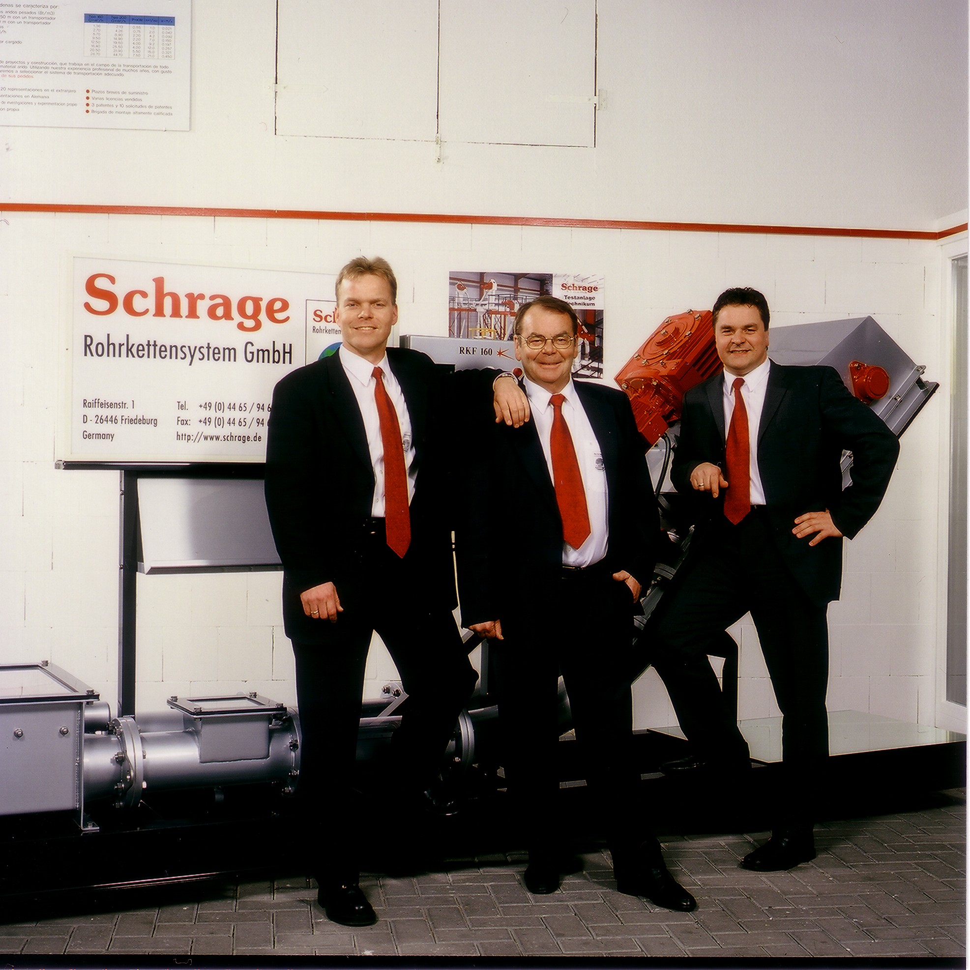 Dafür fuhr Remmer Schrage nun vom heimischen Friedeburg in Ostfriesland quer durch das Land und erntete mit der mobilen Vorführanlage erst Staunen, dann aber vor allem Aufträge. Denn die Rohrkettenförderer eigneten sich für erstaunlich viele Branchen und finden sich heute nicht nur in Ostfriesland, sondern in der ganzen Welt wieder.